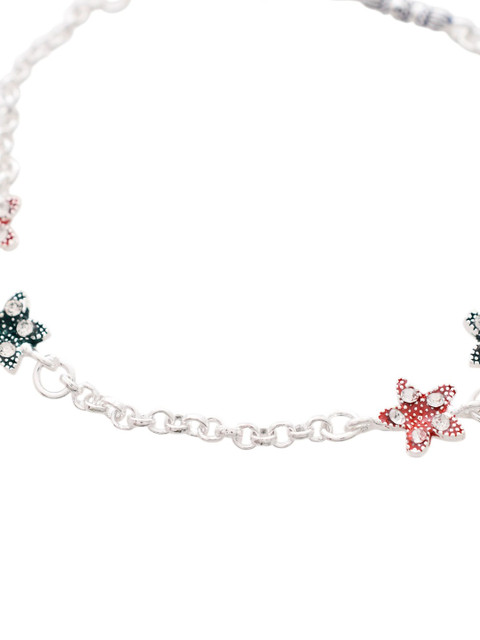 Step into elegance with this stunning silver-plated anklet adorned with sparkling star charms and intricate chain details. Designed for modern and traditional outfits alike, this lightweight and adjustable anklet adds a touch of glamour to your everyday or festive look. The delicate yet durable craftsmanship ensures long-lasting shine and comfort. Whether you’re dressing up for a party, wedding, or casual outing, this anklet is a must-have in your jewelry collection. A perfect gift choice for birthdays, anniversaries, or special occasions.