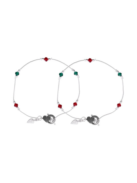 Silver-plated artificial stones and beads Studded anklet s-hook closure