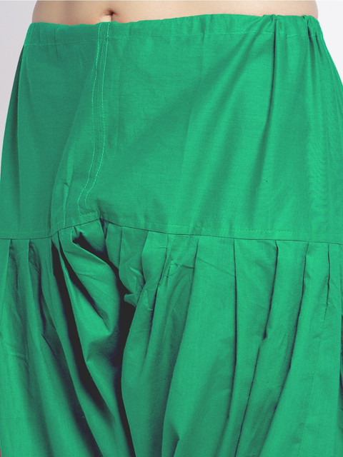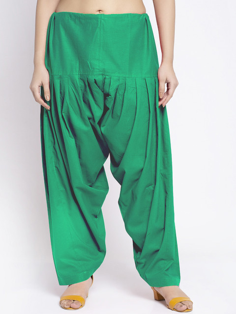 Pack of 2 solid mid-rise salwars in orange and green, each with gathers and pleats, waistband with a slip on closure