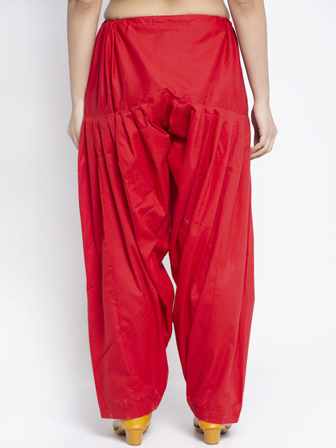 Red & Gery solid loose-fit salwar with gathers and pleats, has a waistband with a drawstring fastening
