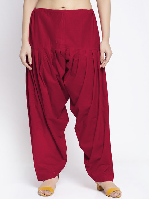 Maron solid mid-rise regular-fit salwar, has a gathers and pleats and elasticated waistband with slip-on closure