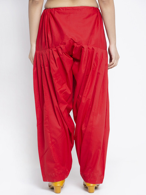 Pack of 2 solid regular-fit mid-rise salwars in navy blue and red, each has a pleated front and an elasticated waistband with drawstring closure