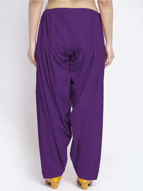 Pack of 2 solid mid-rise loose-ft salwar with gathers and pleats in blue and purple