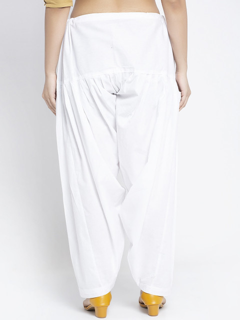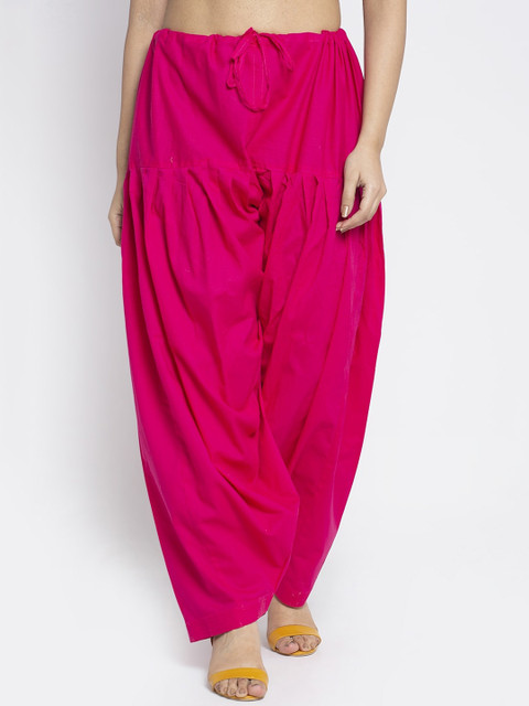 Pack of 2 solid regular-fit mid-rise salwars in pink and white, each has a pleated front and an elasticated waistband with drawstring closure