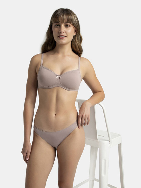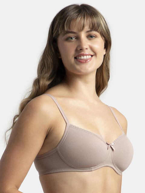 Jockey Wirefree Padded Plus Size Cotton Medium Coverage Tshirt Bra with Lace Styling-1723