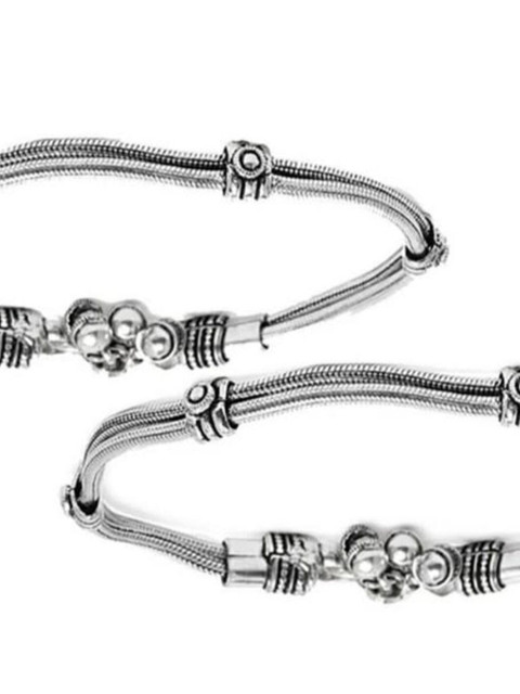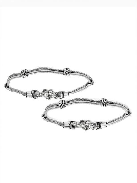 JOHARKAMAL Silver-Plated Double Lined Oxidised Anklets