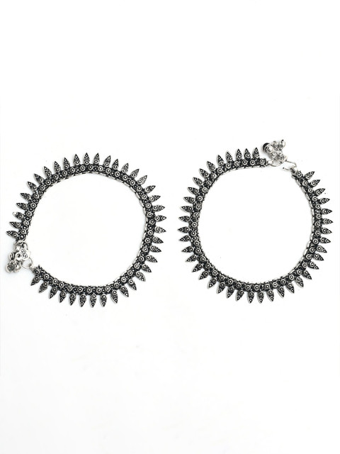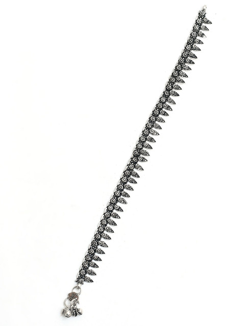 Silver-toned oxidised anklets