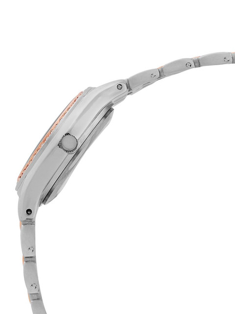Strap Style: rose gold toned, bracelet style, metal strap with a foldover