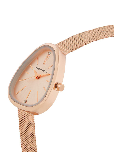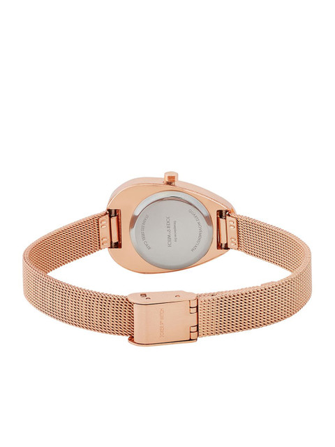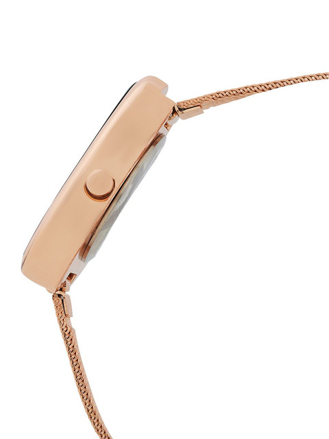 Strap Style: rose gold toned, bracelet style, stainless steel strap with a foldover