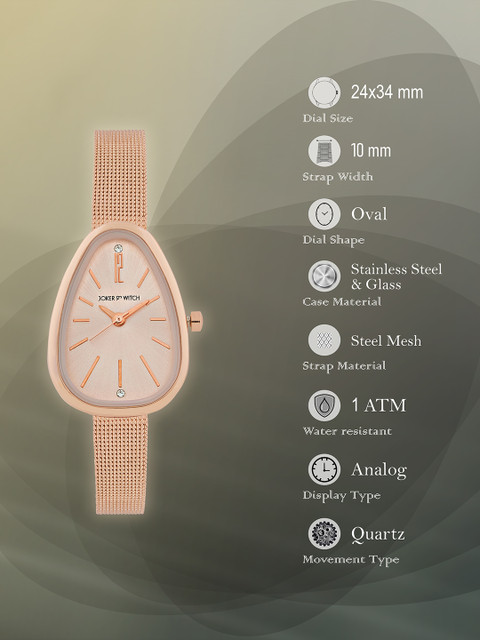 Dial style: rose gold-toned oval stainless steel dial