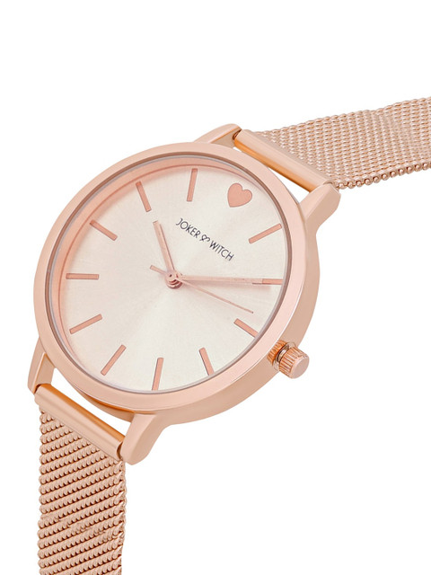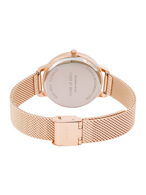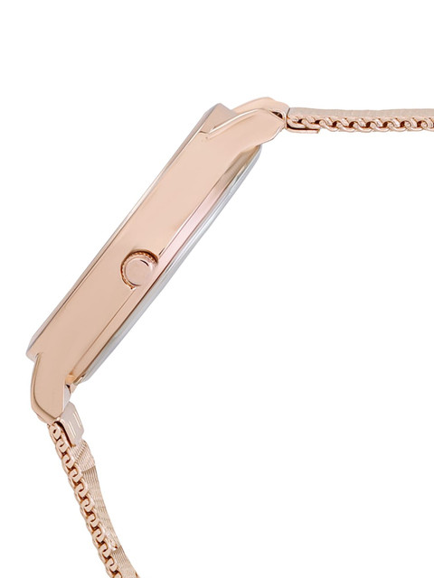 Strap Style: rose gold toned, bracelet style, stainless steel strap with a foldover
