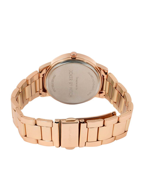 Strap Style: rose gold toned, bracelet style, stainless steel strap with a foldover