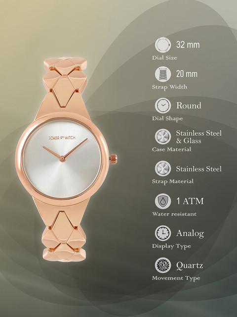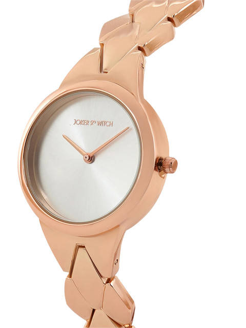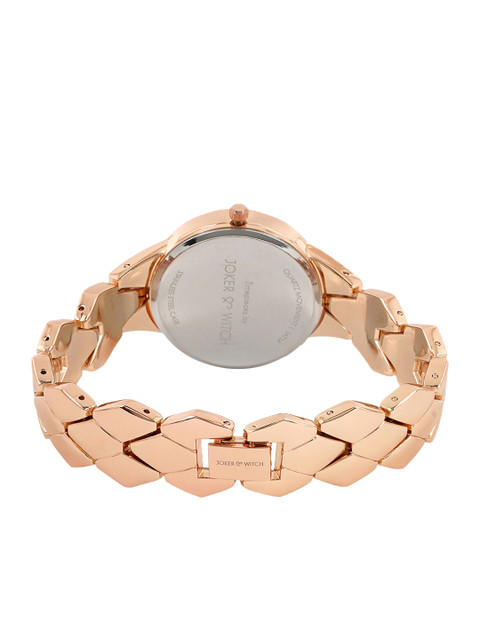 Strap Style: rose gold toned, bracelet style, stainless steel strap with a button