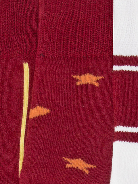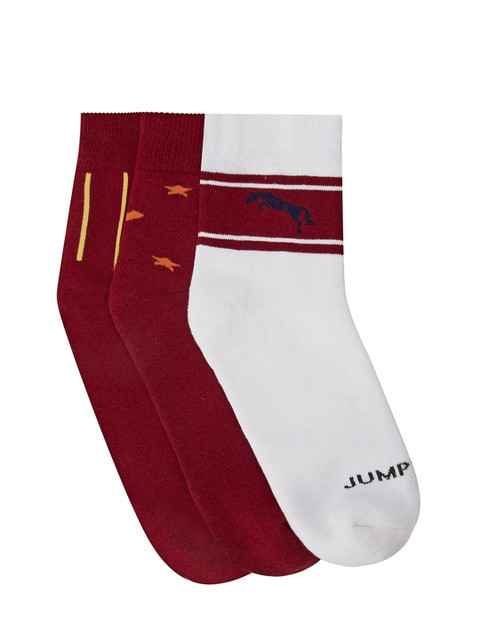 Pack of three solid ankle-length socks in white and maroon, each has an elasticated mouth and a flat-toe seam