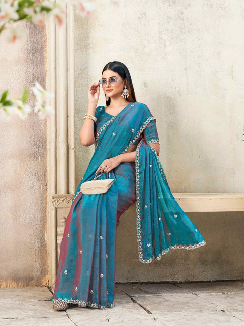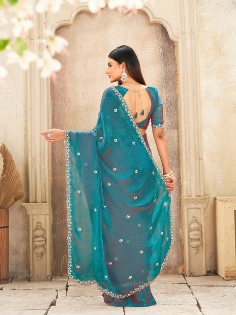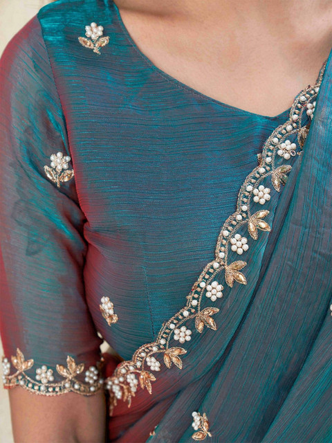 The blouse worn by the model might be for modelling purpose only. Check the image of the blouse piece to understand how the actual blouse piece looks like.