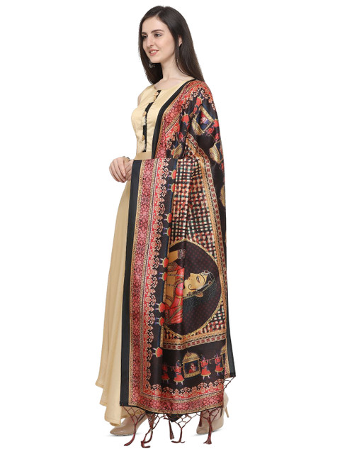 Red, black & gold toned ethnic motifs printed dupatta, tasselled border