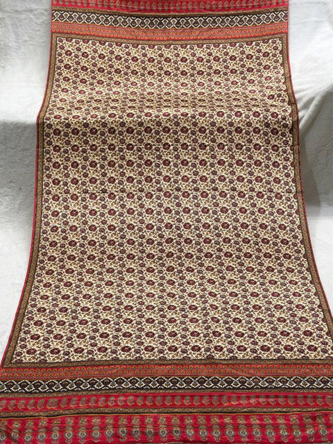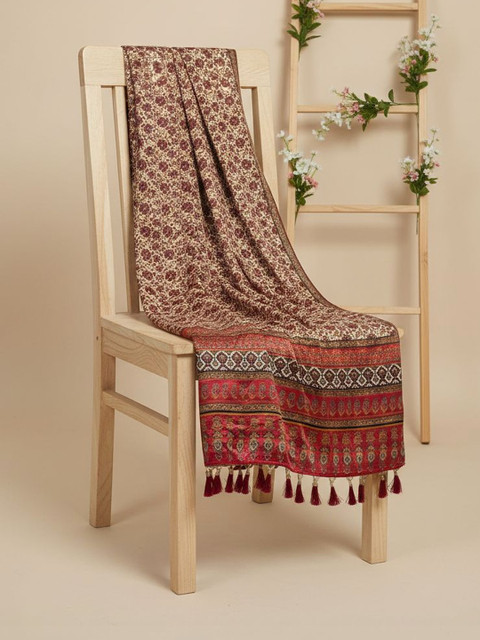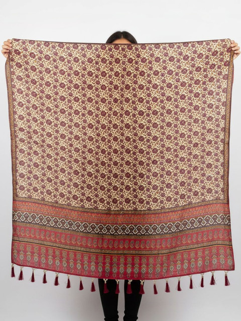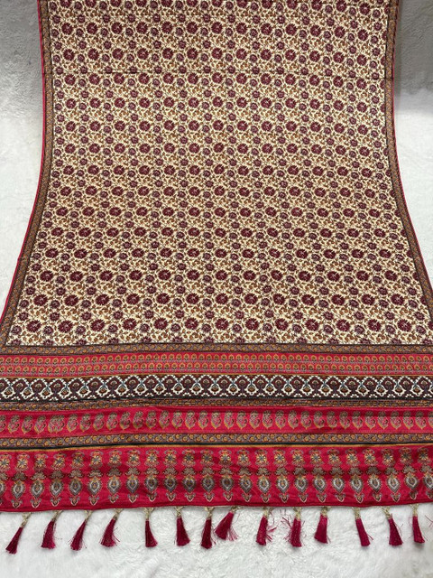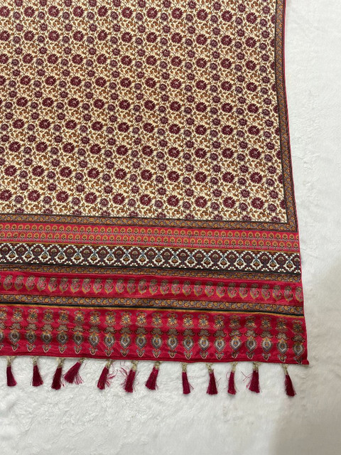 Red and beige floral printed dupatta, tasselled border