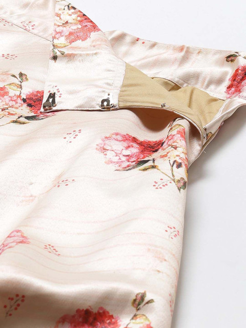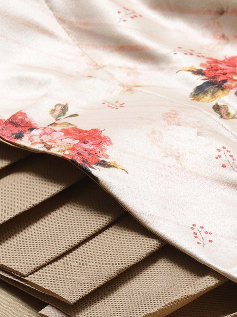 Cream-coloured and maroon, black Floral printed choli with dupatta,