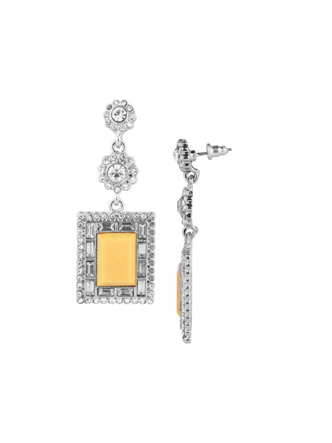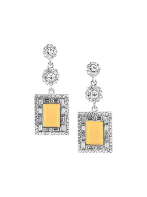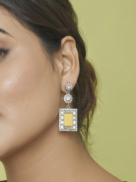Silver toned & yellow geometric drop earrings, has artificial stones