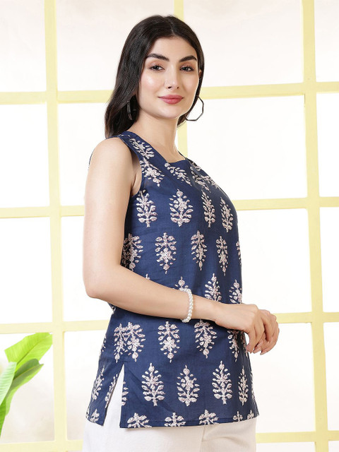 KALAMIR Ethnic Motifs Printed Cotton Ethnic Top