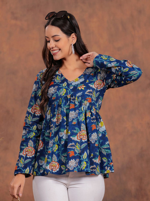 2 reviews for KALAMIR Women Floral Print Twisted Cotton Top