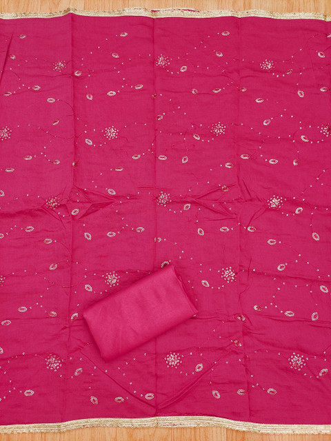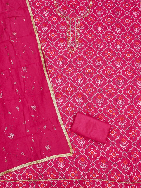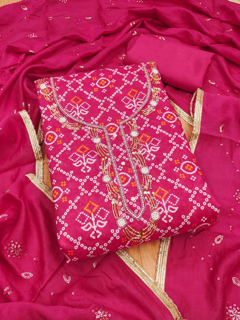 Pink and white bandhani printed unstitched dress material
