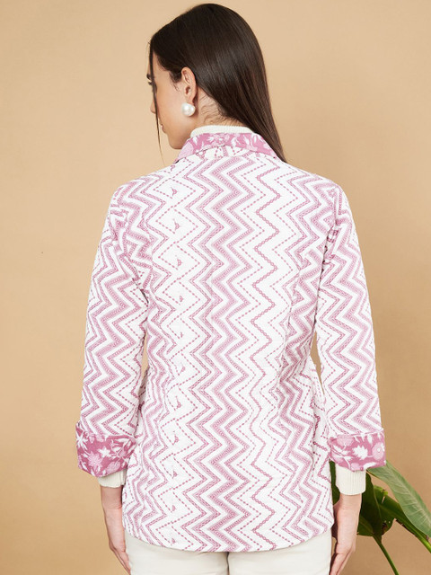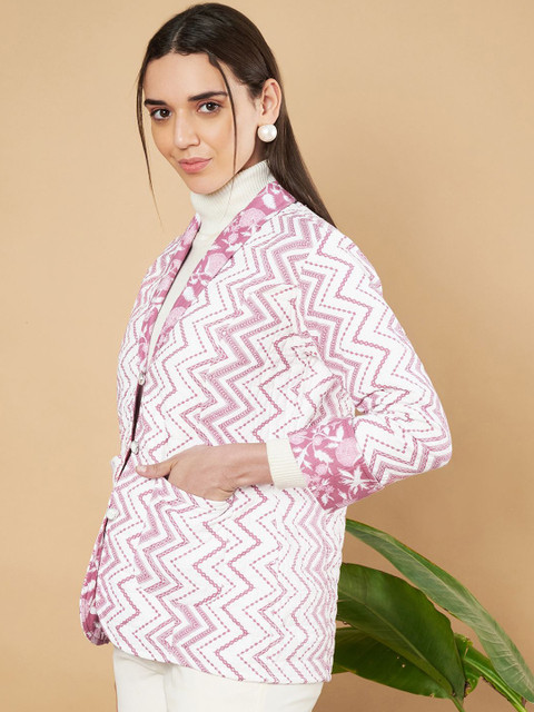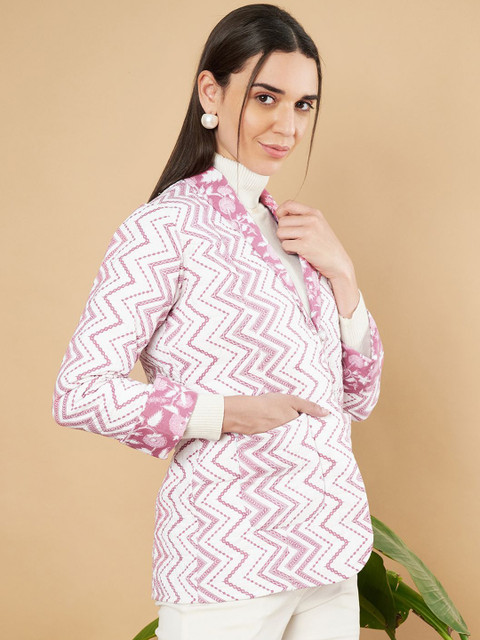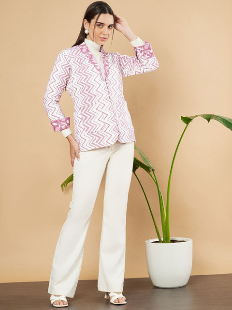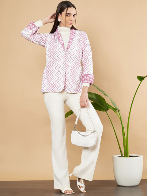 KALINI Chevron Printed Single Breasted Cotton Comfort Fit Blazers