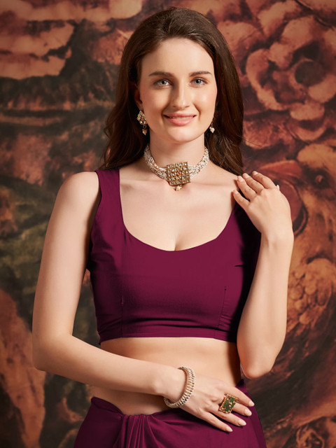 The blouse worn by the model might be for modelling purpose only. Check the image of the blouse piece to understand how the actual blouse piece looks like.