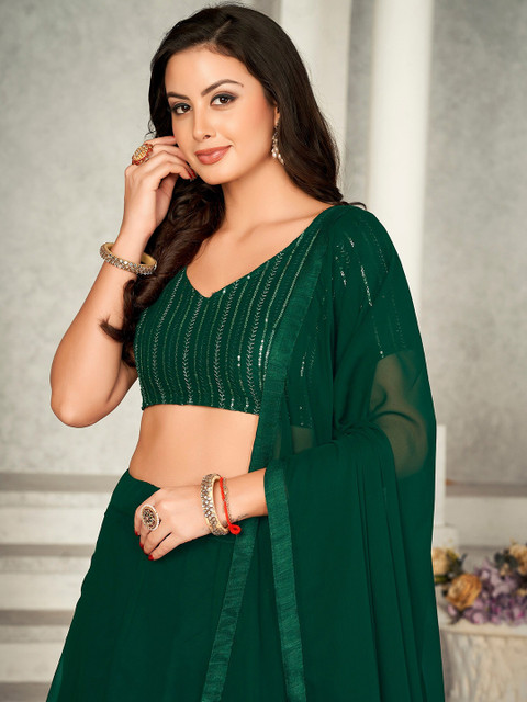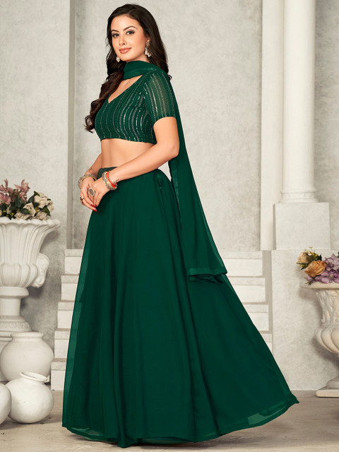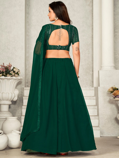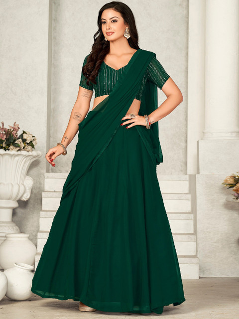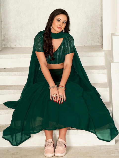 Green solid ready to wear lehenga, has zip closure