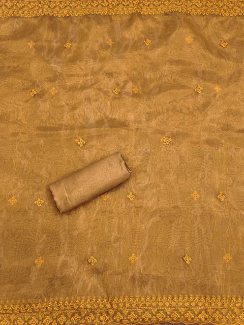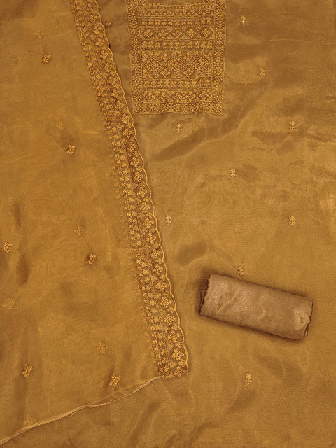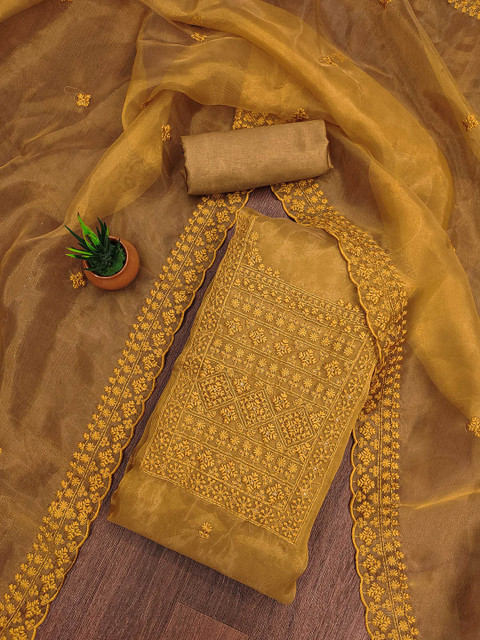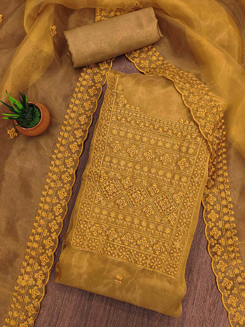 Mustard yellow embroidered unstitched dress material