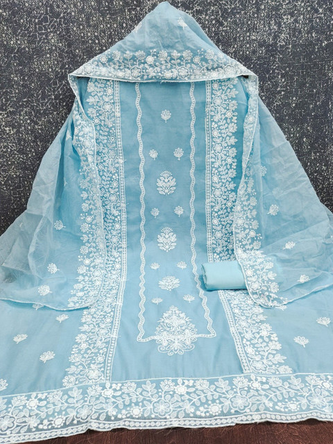 Blue embroidered unstitched dress material
