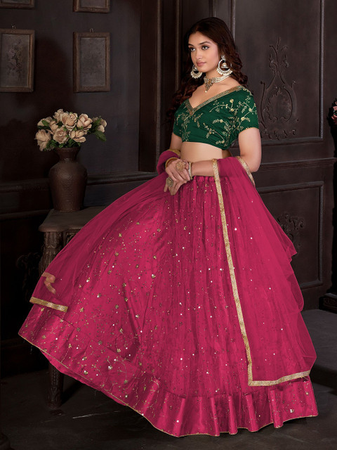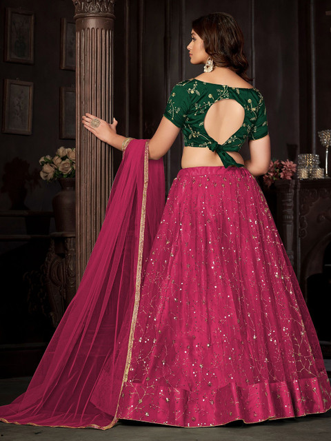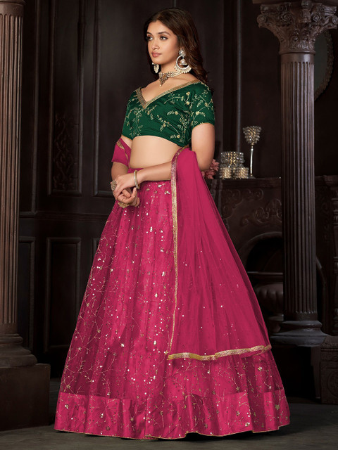Dark Pink Sequins Embroidered Net Lehenga Choli