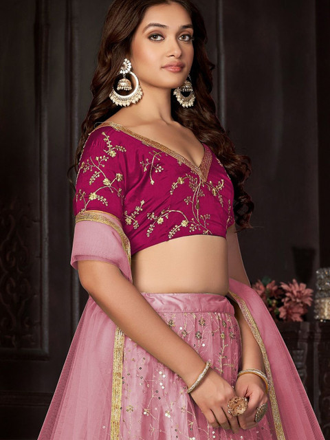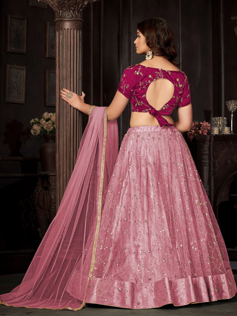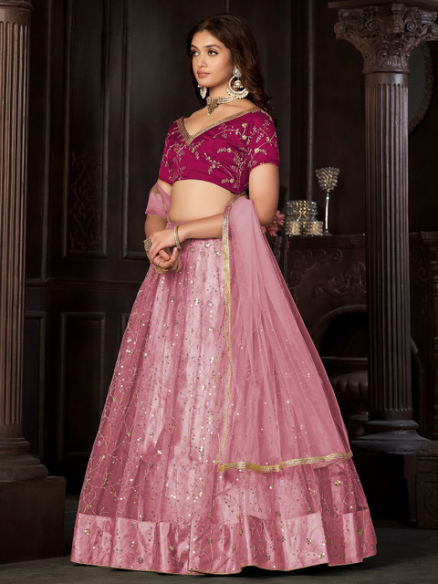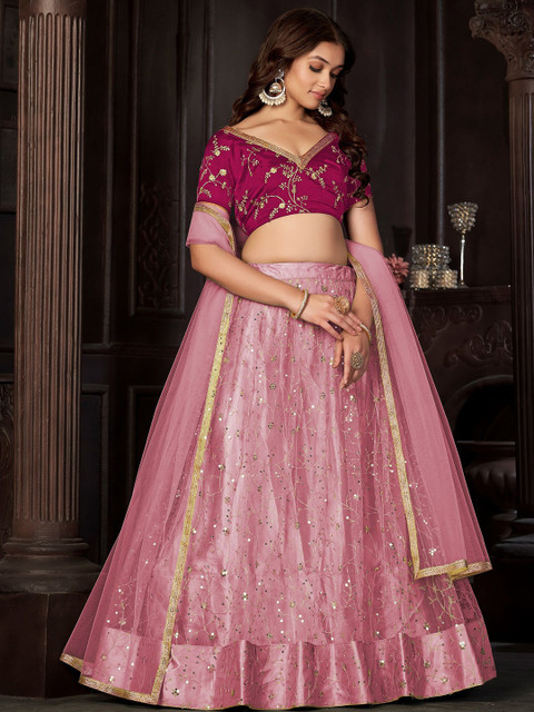 Pink Sequins Embroidered Net Lehenga Choli