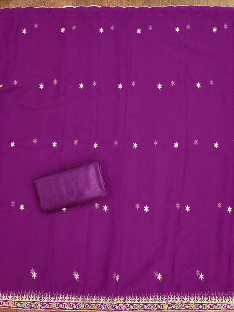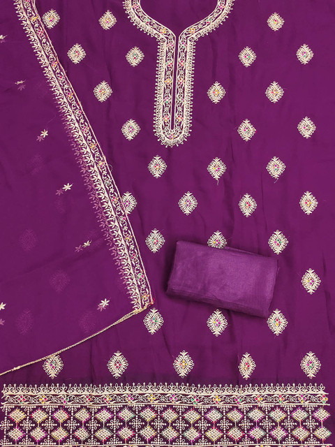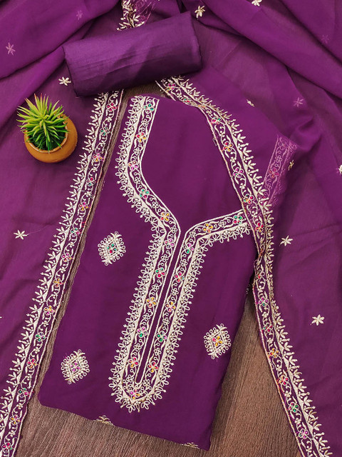 Purple & White embroidered unstitched dress material