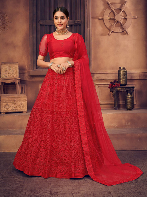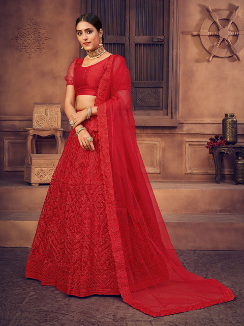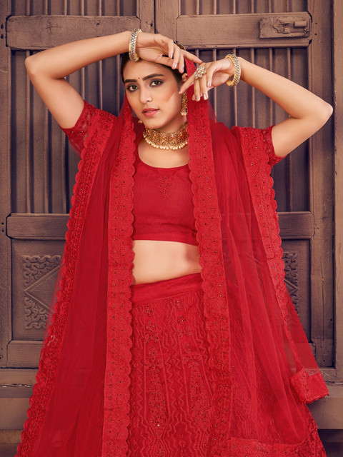 Embroidery Red Color Net Fabric Lehenga Choli For Women