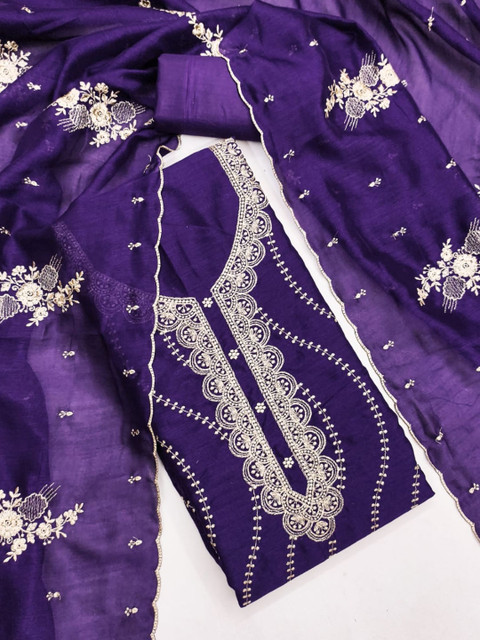 Purple embroidered dupatta, has Disclaimer: Images are for referral purposes only. The actual product is unstitched