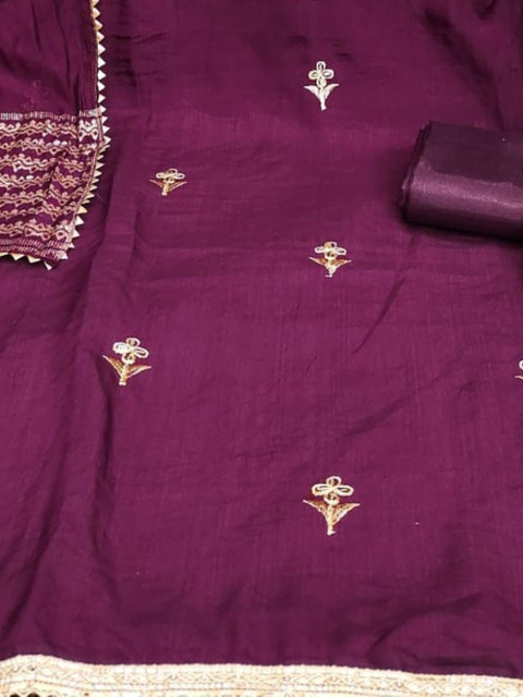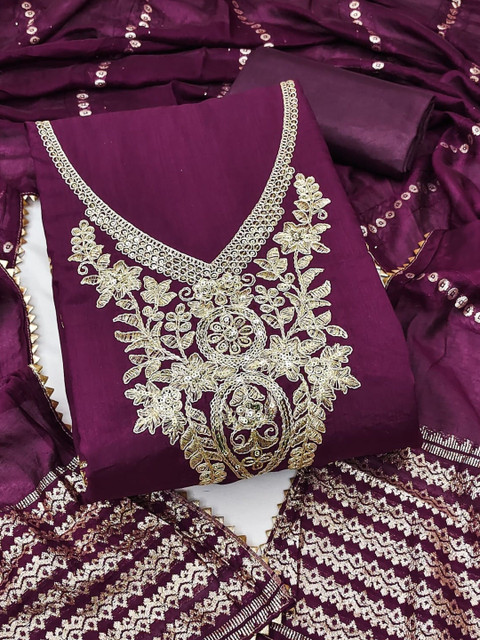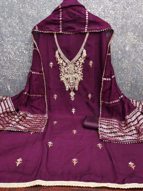 Burgundy embroidered unstitched dress material