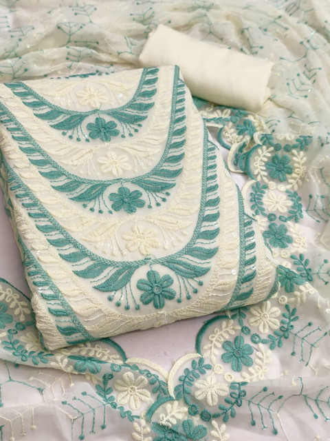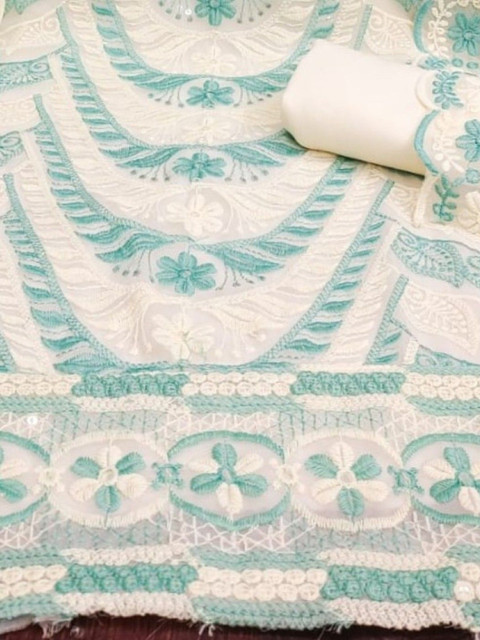 White embroidered unstitched dress material