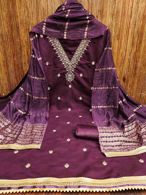 Top Fabric length – 230 cm, Top Fabric Width – 100 cm, Bottom Fabric Length – 220 cm, Bottom Fabric Width – 100 cm, Dupatta Length – 220 cm, Dupatta Width – 100 cm
