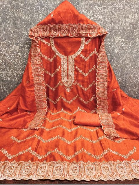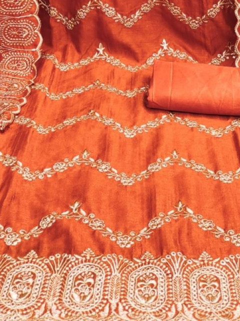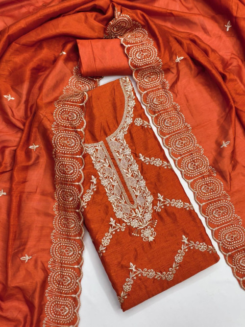 Rust Embroidered Unstitched Dress Material