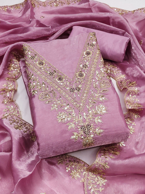 Pink embroidered unstitched dress material