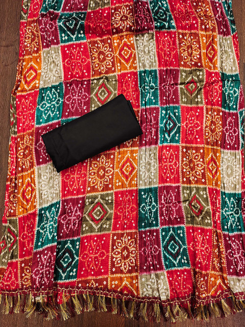 Black and red printed dupatta, has tassels border