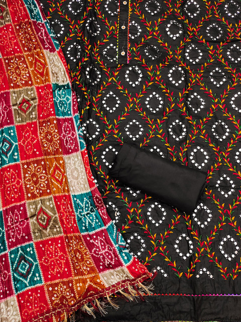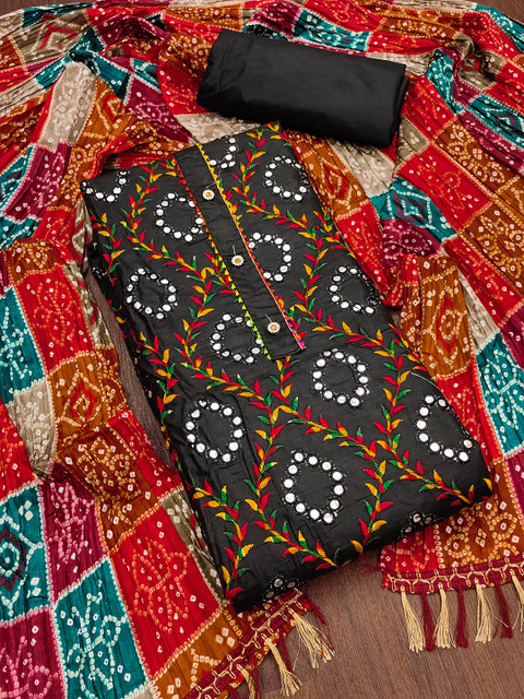 KALINI Ethnic Motif Embroidered Mirror Work Pure Cotton Unstitched Dress Material