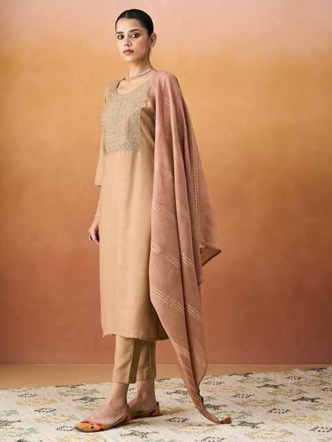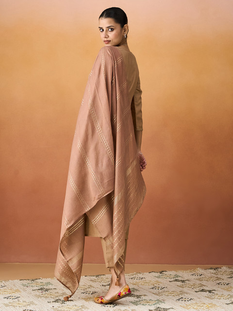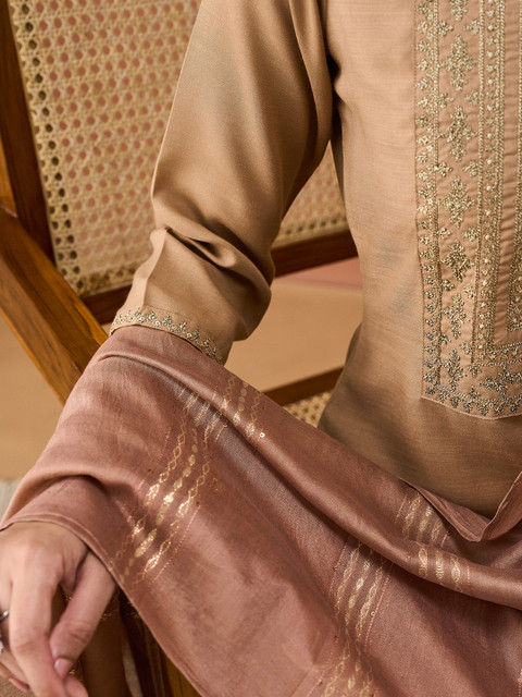 Beige embroidered Kurta with Trousers & dupatta