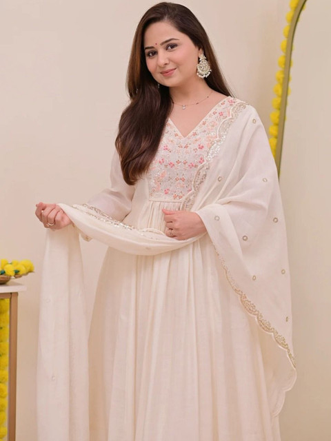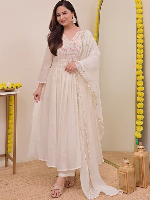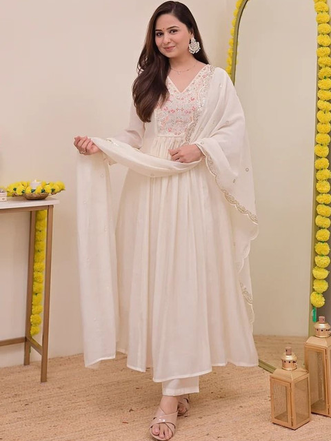 Kurta Fabric: Chanderi Silk; Bottom Fabric: Chanderi Silk; Dupatta Fabric: Chanderi; Dry Clean Only.