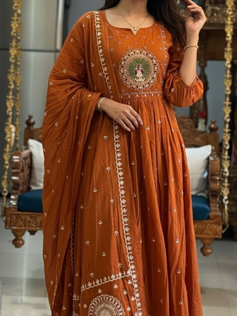 Anarkali kurta set is exactly matching with description in view of design, colour and fabric. Good fitting and fabric quality is as finest with thread work looks great. Overall looks good and Worthy to buy at this price.