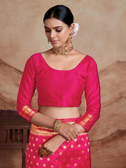 The blouse worn by the model might be for modelling purpose only. Check the image of the blouse piece to understand how the actual blouse piece looks like.