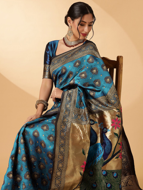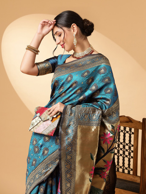- Blue and gold-toned paithani saree