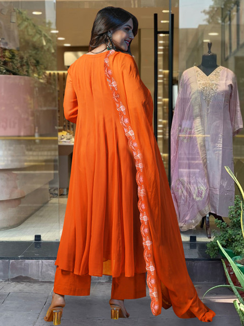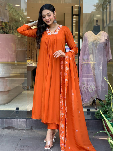 Orange & white embroidered Kurta with Trousers with dupatta