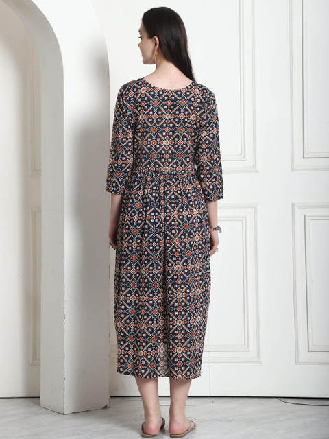 - Navy blue floral print a-line dress
